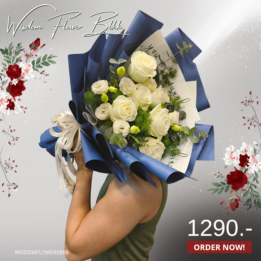ช่อกุหลาบขาวโรแมนติก